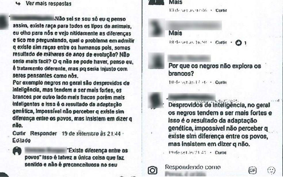 “Por exemplo negros no geral são desprovidos de inteligência, mas tendem a ser mais fortes, os brancos por outro lado mais fracos porém mais inteligentes e isso é o resultado da adaptação genética, impossível não perceber q existe sim diferença entre os povos, mas insistem em dizer q não”, diz trecho de uma das mensagens publicadas por ele.