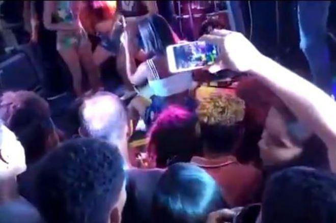 Um vídeo divulgado nas redes sociais mostra uma mulher agredida com um chute no rosto enquanto dançava em show de pagode em Pojuca, na região metropolitana de Salvador, na Bahia, no domingo (27). As imagens mostram a mulher dançando durante a apresentação de um cantor conhecido como "O Poeta" e em meio à dança um homem surge para agredi-la com um chute em seu rosto