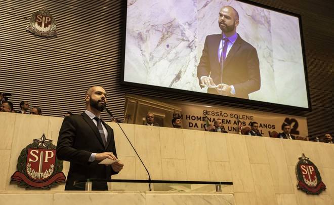 O deputado federal Eduardo Bolsonaro (PSL-SP) sugeriu um novo AI-5 "se a esquerda radicalizar". Eduardo deu declaração em entrevista à jornalista Leda Nagle, divulgada na quinta-feira (31). O deputado defendeu medidas drásticas, como "um novo AI-5", para conter manifestações de rua como as que ocorrem no Chile atualmente