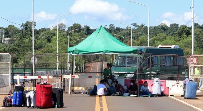 Ainda assim, o grupo que está hoje na ponte insistiu em atravessar. No final da semana passada, eram oito, mas durante o final de semana outros chegaram e agora quase duas dezenas aguardam na ponte uma solução. Uma barraca foi colocada no local para abrigá-los do sol e a PF e a Polícia Rodoviária Federal tentam conseguir um banheiro químico.